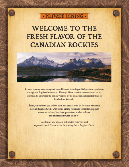 Menu cover, Bugaboo Creek Restaurant